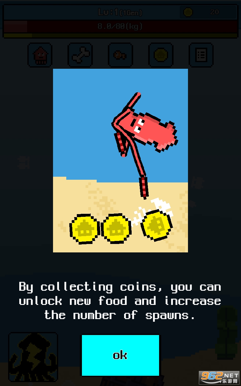 通过收集硬币,您可以解锁新食物并增加产卵数量。