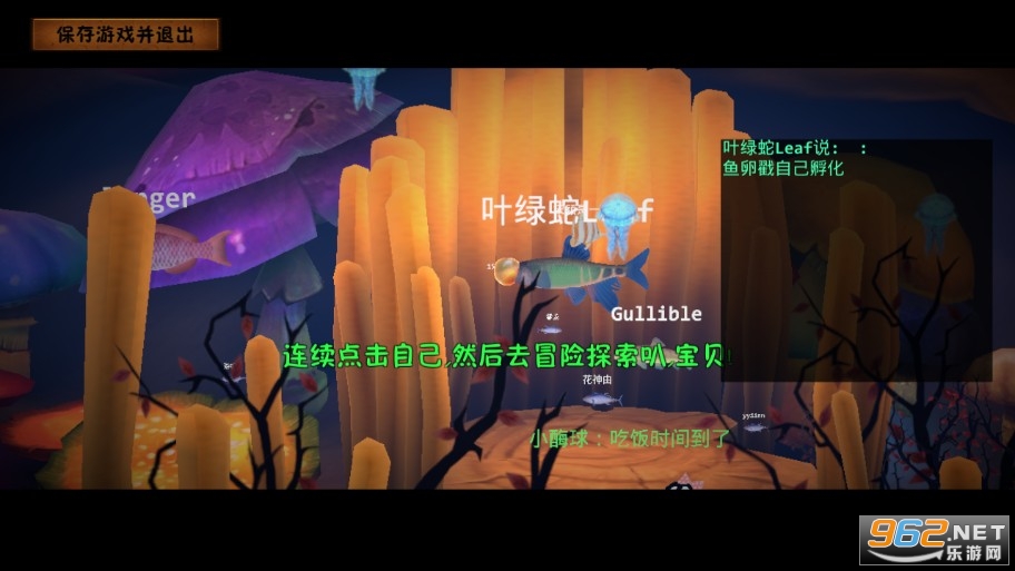 这是一款在线生存模拟RPG游戏,这里有美妙的音乐和丰富的场景,在这个世界中你会从一个鱼卵开始你的冒险,当然我要提醒你, 在这个巨大的鱼类世界中也蕴藏着许多危险,需要你的勇气去征服,当你经历了成长之后,你会变成一条很的大鱼,那样你就有了更多选择其他鱼类的机会,希望你和你的伙伴能这里成长和体验,体验你的快乐和悲伤,最后我要祝你好运,我亲爱的朋友。