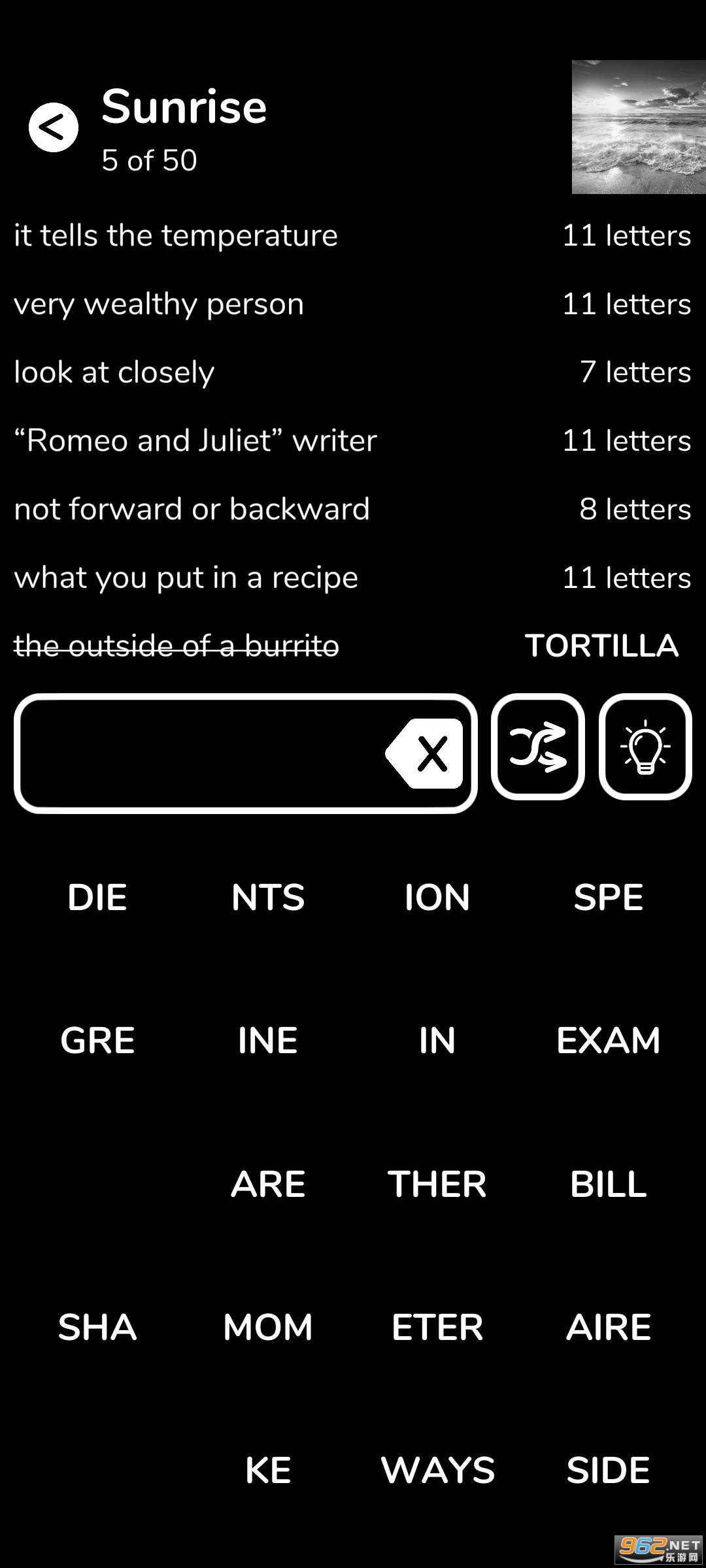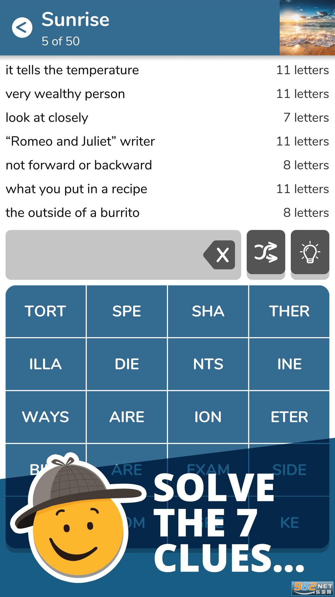 《7 Little Words7个小词官方版游戏》是一款填字游戏,包含填字、找词、字谜或琐事测验,,超过10000个谜题供您去挑战,5个难度级别,选择合适的难度来进行游戏吧。