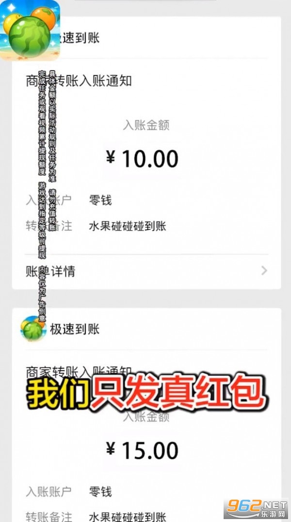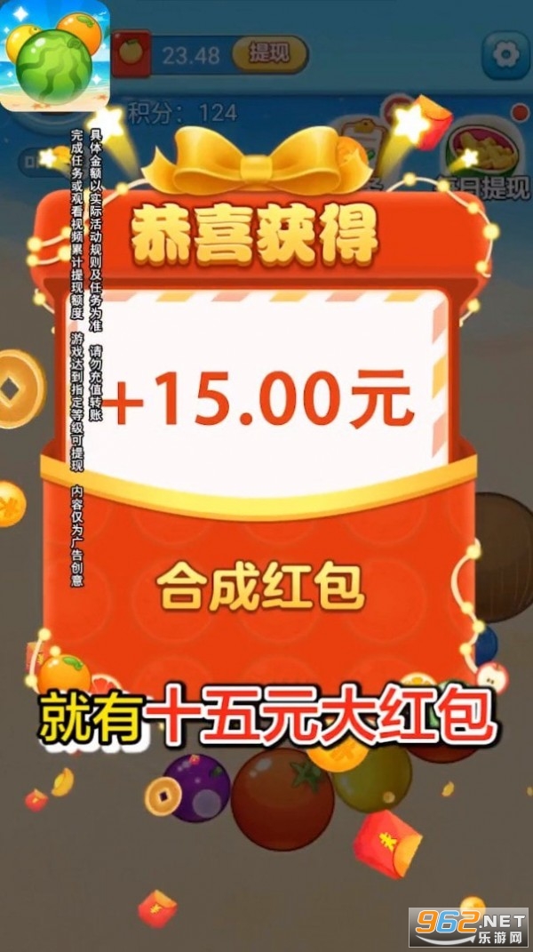福利超多的一款水果消除合成类游戏,不断地去挑战完成消除任务便可以获得海量的红包奖励,这类游戏玩起来还是很轻松的,并且不受时间和地方的限制,随时都能玩,每天玩一玩赚赚零花钱还是很轻松。