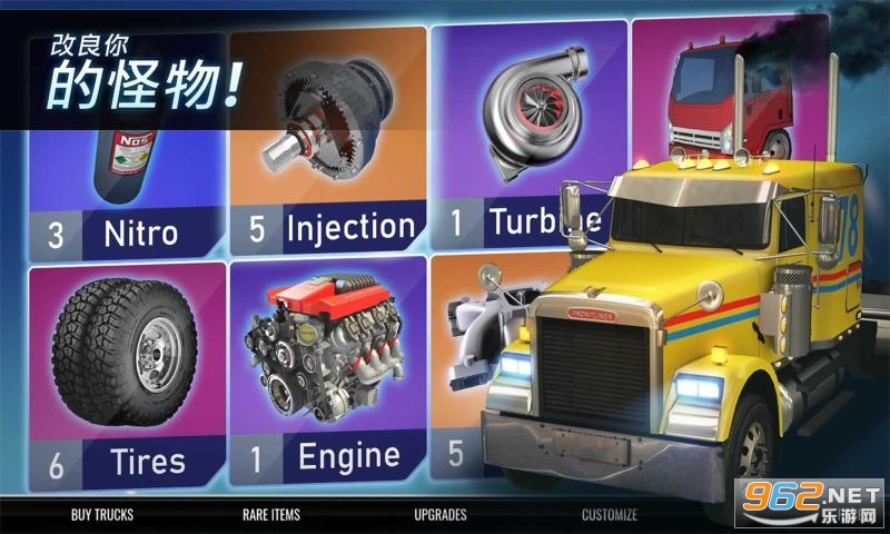 《大卡车竞速》是一款美式风格的大型卡车竞速游戏,驾驶大型重卡竞速比赛是一种什么样的体验,虽然速度没有小型赛车那么快,但是全力加速给人的视觉冲击感还是挺强的。游戏有着最逼真的物理引擎技术以及完美的后期优化,所以画面相当流畅,操作的手感也非常不错。