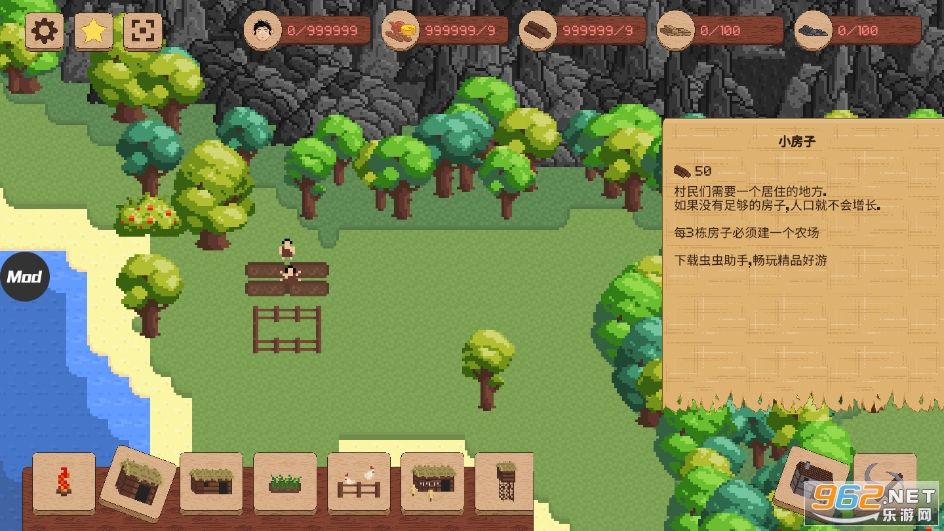 1、像素风格,融合模拟经营和策略战争,必须通过收集资源,扩大村庄规模,保护它免受不同时代的敌人攻击,推进文明。