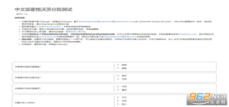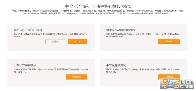 为大家带来霍格沃茨分院测试中文版的网页版地址,直接通过回答问题让分院帽把你分进合适的学院就可以了,玩起来还挺有意思的,除了这个分院测试,还可以体验到各种其他的测试哦!