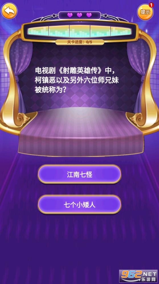 一款休闲益智类的答题闯关小游戏,包含五大类知识,包括生活、娱乐、知识、文化、流行五大方面,其中每一类题目中包含4个小类,难度梯度有新手、简单、中等、困难和极难。每次闯关挑战需要答对5题,不会的题目可以查看提示,答错了还可以复活,让你在挑战中学习,在学习中获得知识!