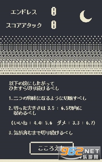 Ittouryoudan,秀出你的手速,让你必须在给出的图案上划上一刀,注意一定要一刀两断,将图案切割成两半,而这两半的面积比例不能超过3.5:6.5,也就是说其中一般的面积要小于3.5或大于6.5,完成全部图案的切割才能过关。