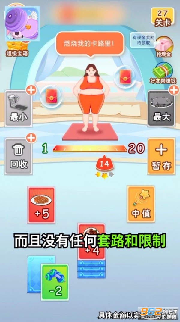 2、各种各样的健身设施,多样的减肥玩法,敏捷身手,灵活移动,收获奖励;