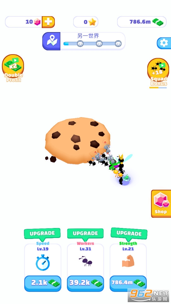 趣味的放置养成游戏,蚂蚁通过不断的搬运食物来获得钞票奖励,然后升级技能来获得更多的蚂蚁,更快的速度和更强大的力量,小编带来的是放置蚂蚁模拟器破解版,无限钞票免费用。