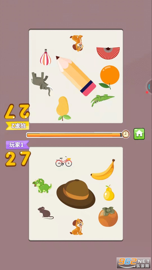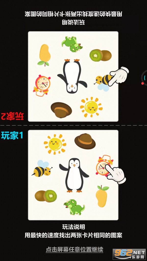疯狂对对,一个连结婚都顾不上,一定要玩的小游戏。 双人游戏,我方与对方拿相等数目的卡牌,分别将自己的卡牌打出去;然后迅速的找出两方出牌中相同的物品,比如两张卡牌中都有一只老鼠,最先找出相同物品的一方获胜。