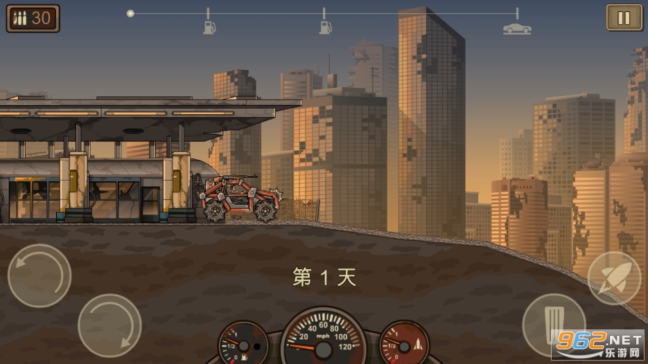 1、巧妙的融合不同的元素,驾驶车辆在大荒原上闯关,极速的前进避开僵尸的袭击;
