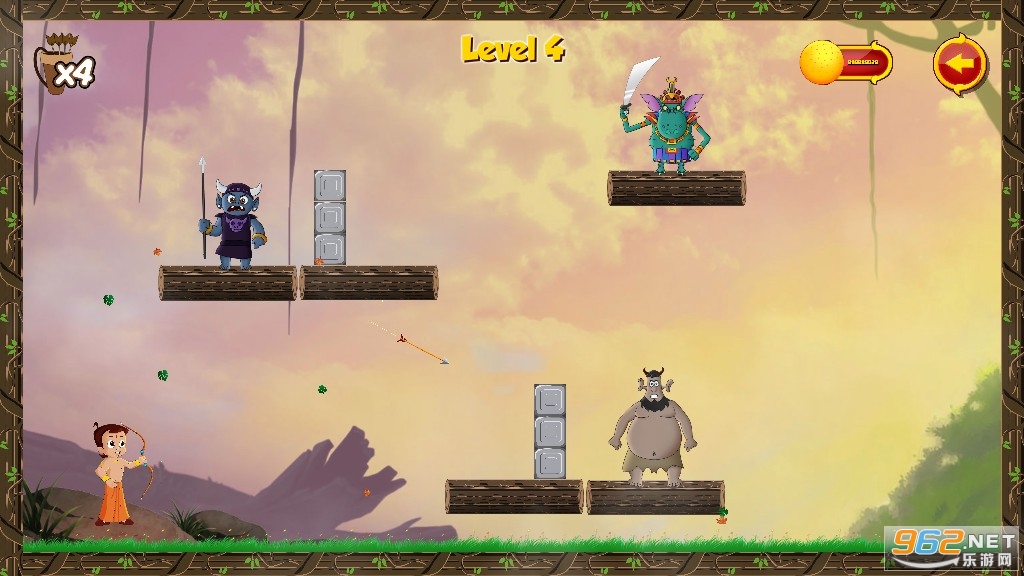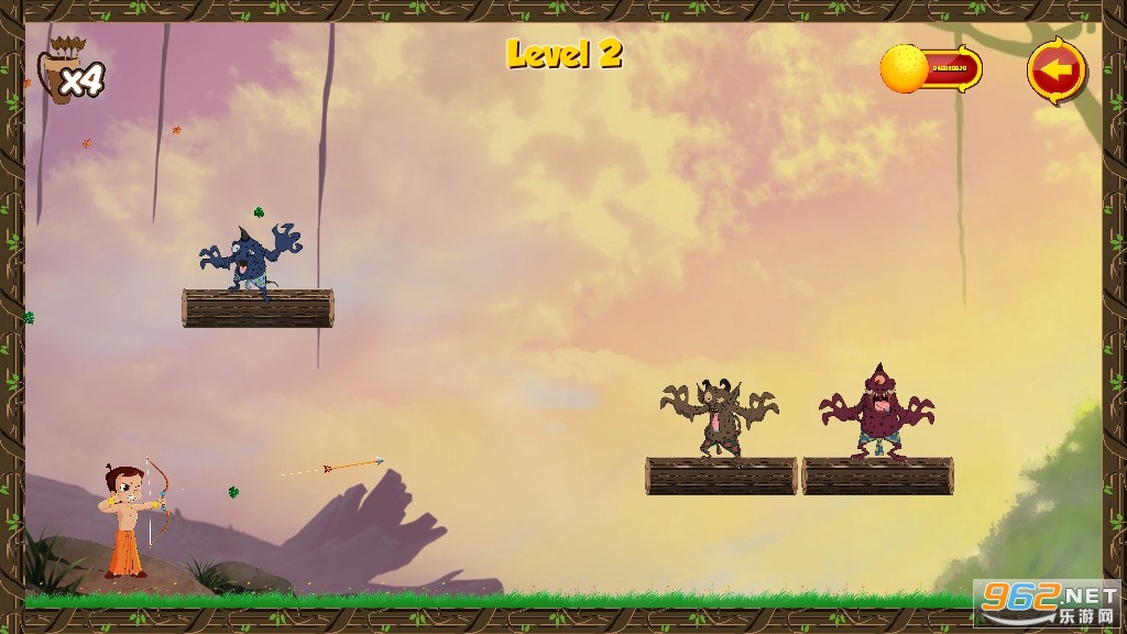 玩起来非常简单的弓箭射击游戏,玩家只需要拖动屏幕上的虚拟摇杆就能控制弓箭射击的角度和方向,松手就能释放弓箭去射击恶魔,尽量用最少的箭干掉上面所有的恶魔。
