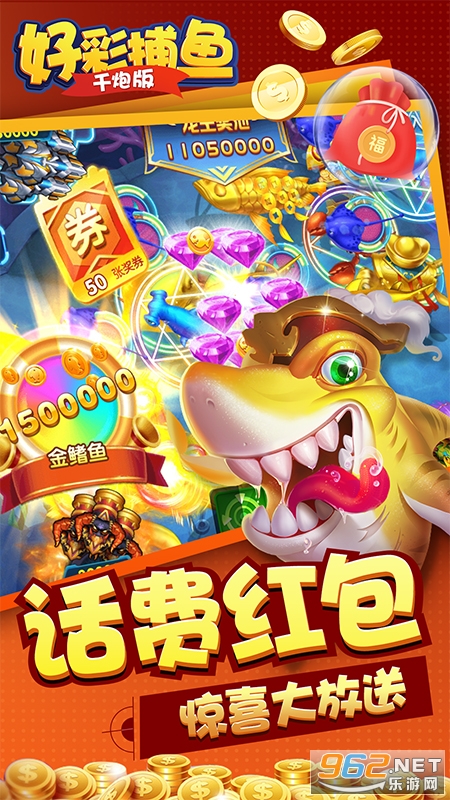 话费红包即玩即领,拼手气挣大钱!别人做的是捕鱼,我们做的是福利!肆无忌惮的轰炸很爽,免费领取的百元话费更爽!让你的捕鱼快乐翻倍!