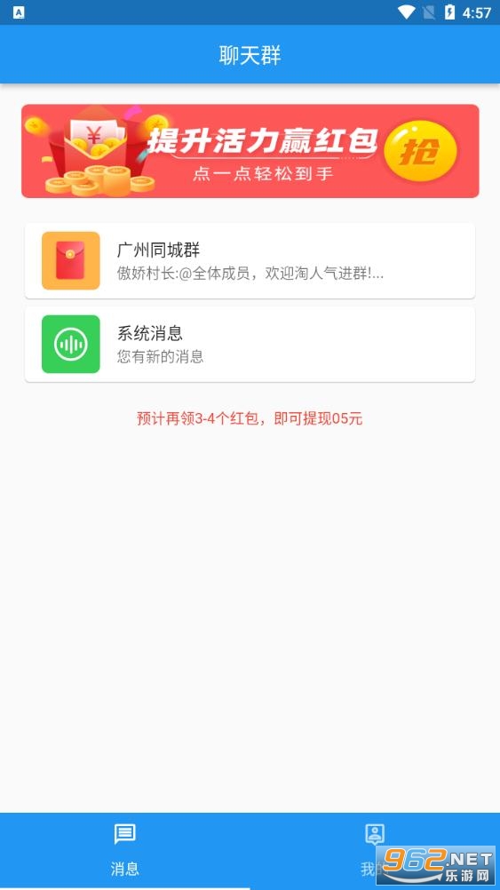 小飞红包群是一款十分有趣的红包聊天app,同城好友在一个群里,聊天就可以获得红包奖励,还可以认识许多有趣的人哦,结实人脉最为重要,app内许多休闲游戏,玩耍即可获得现金红包。