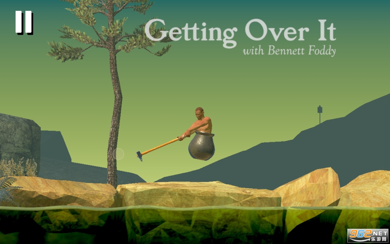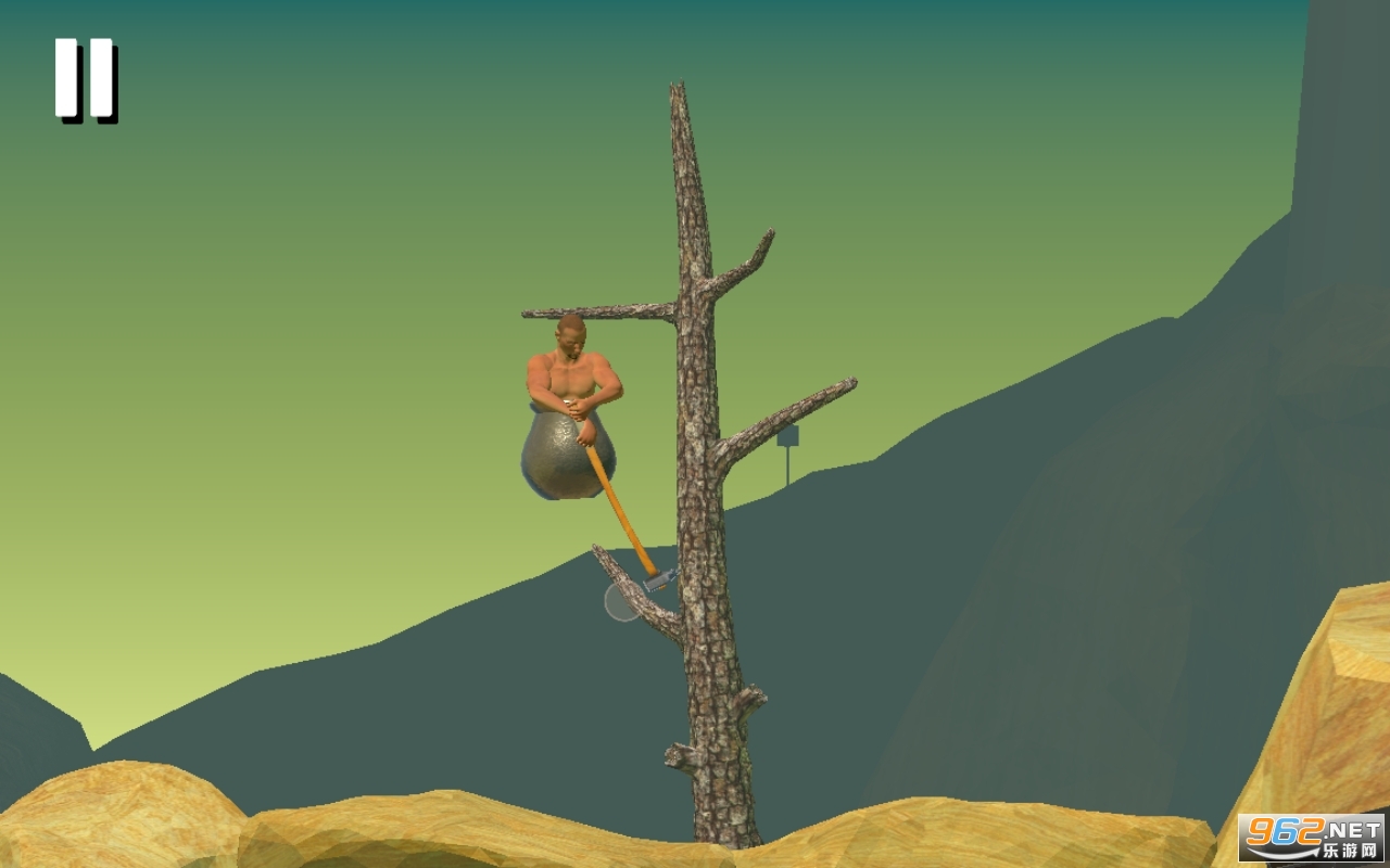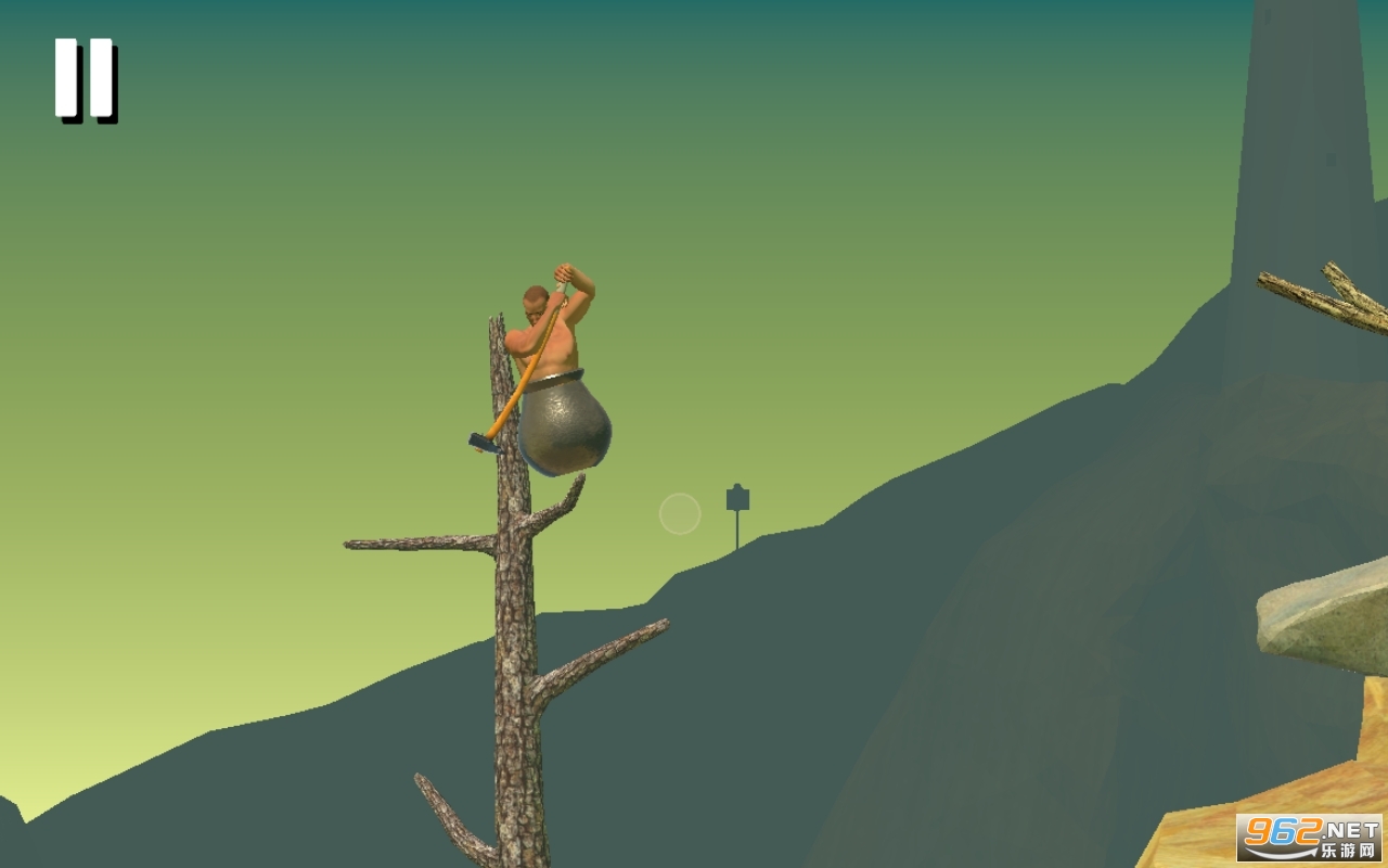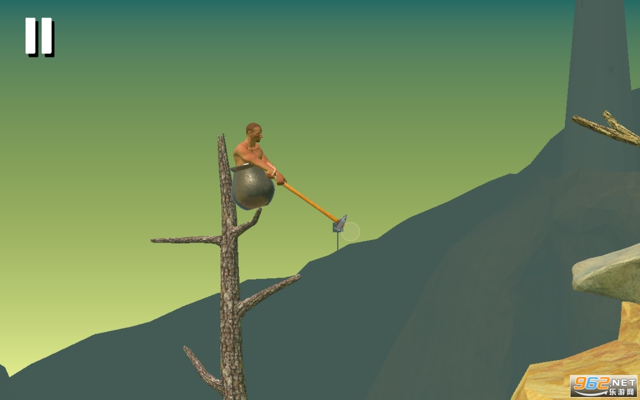 1、玩家控制一个坐在似乎是缸里的人,用一把榔头不断往上爬,操作极其简单;