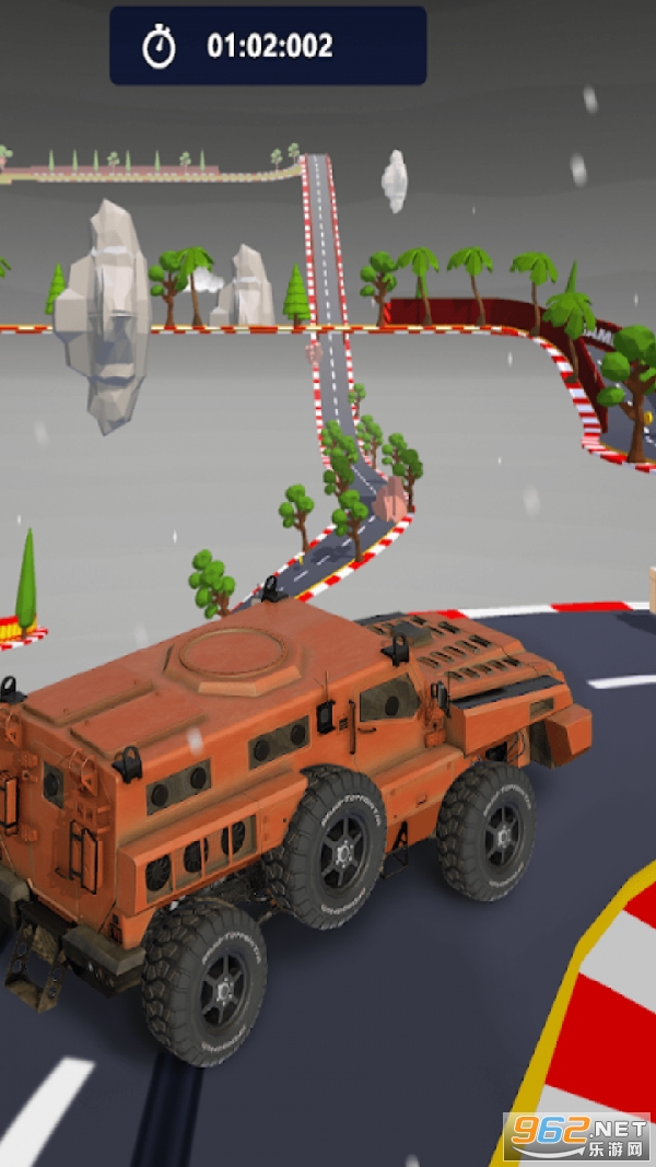 3、操作简单,点击屏幕中空白的地方进行拖动就可以控制车辆的转向和运行。