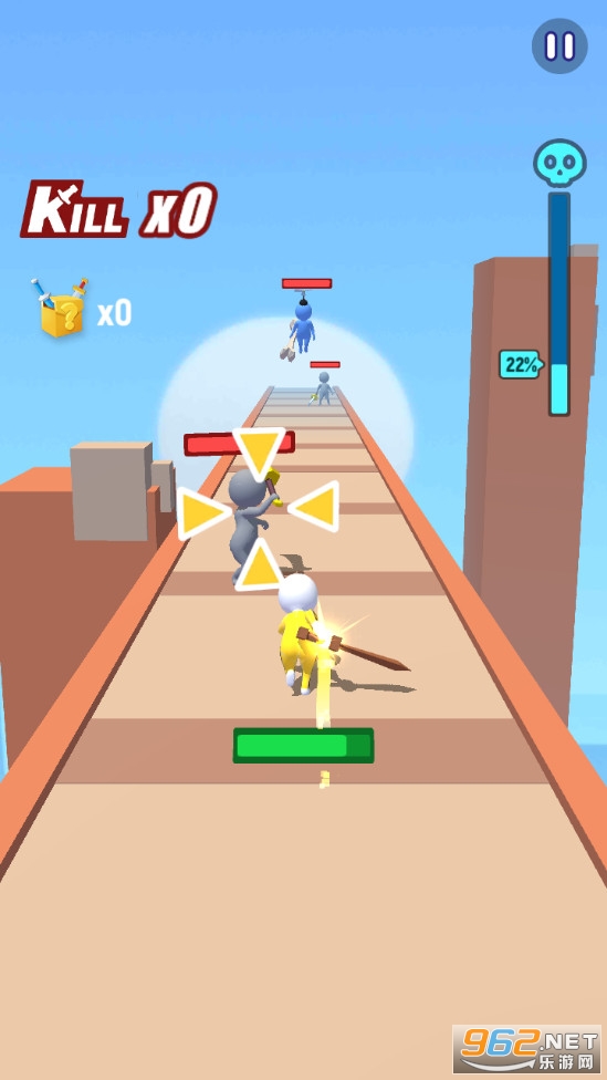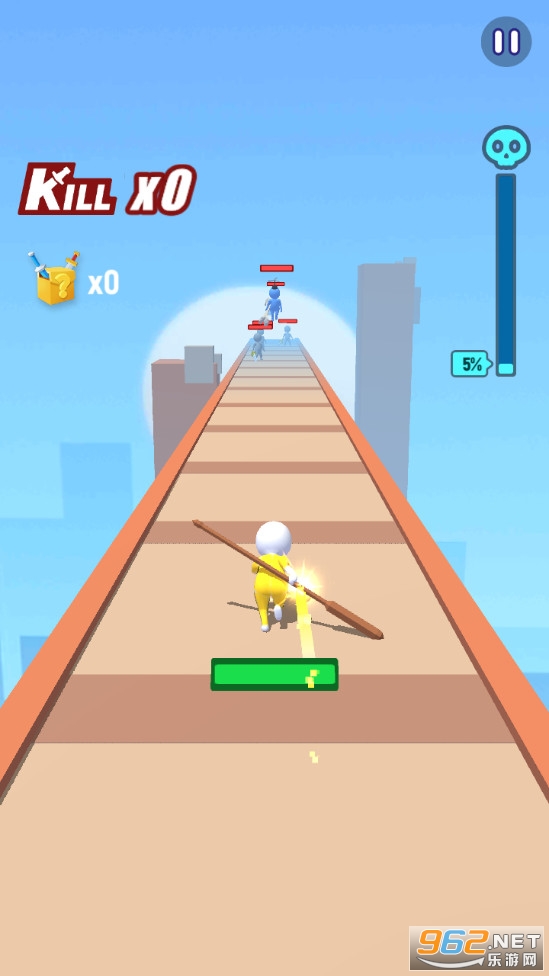 《夺命跑道》(Invincible Samurai)是一款画面清新的奔跑战斗手游,游戏中玩家将控制一个橡皮人向前奔跑,可以使用剑、棍棒等武器去战斗,可以升级提高武器的属性,点击滑动屏幕,控制角色挥舞武器和左右移动下滑躲避攻击,与最终的巨大boss对战,赢得比赛。
