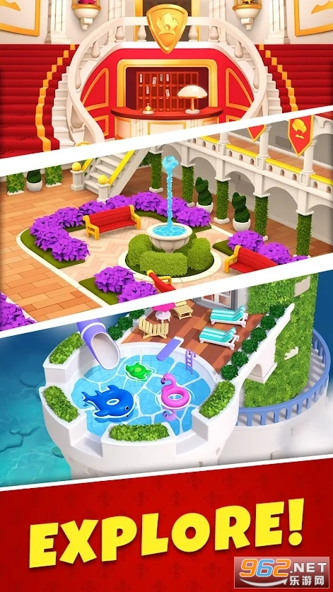 在玩有趣的合并关卡的同时,建造自己的辉煌城堡并将其变成豪华酒店!匹配3D对象并使用强大的助推器来击败具有挑战性的关卡!通过合并可爱的小物品来解锁和设计令人惊叹的地点!开始您的旅程,成为您自己的皇家酒店之王!