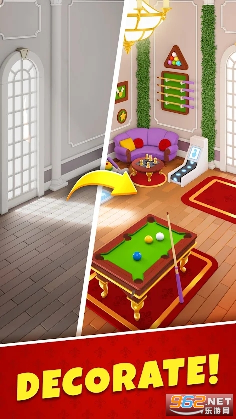 趣味的合并休闲游戏,玩家需要在规定的时间内寻找两个相同的物品进行合并消除,闯关成功获得奖励,然后去解锁沙发、吊灯等各种家具去装饰自己的房间,喜欢的朋友可以下载试试。