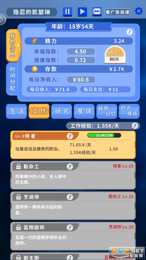 2、工作、生活等一系列活动都需要玩家来选择,进行策略的安排和模拟经营。