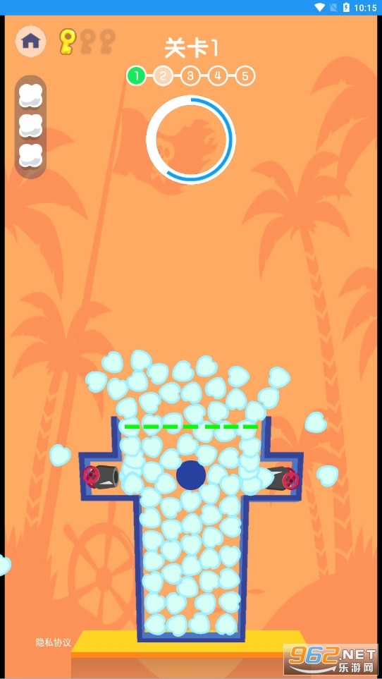 简单的闯关游戏,玩家只需要长按屏幕即可快速的发射爆米花,当爆米花累积到一定程度通过虚线即可成功闯过关卡,适合打发时间,喜欢的朋友可以下载试试。