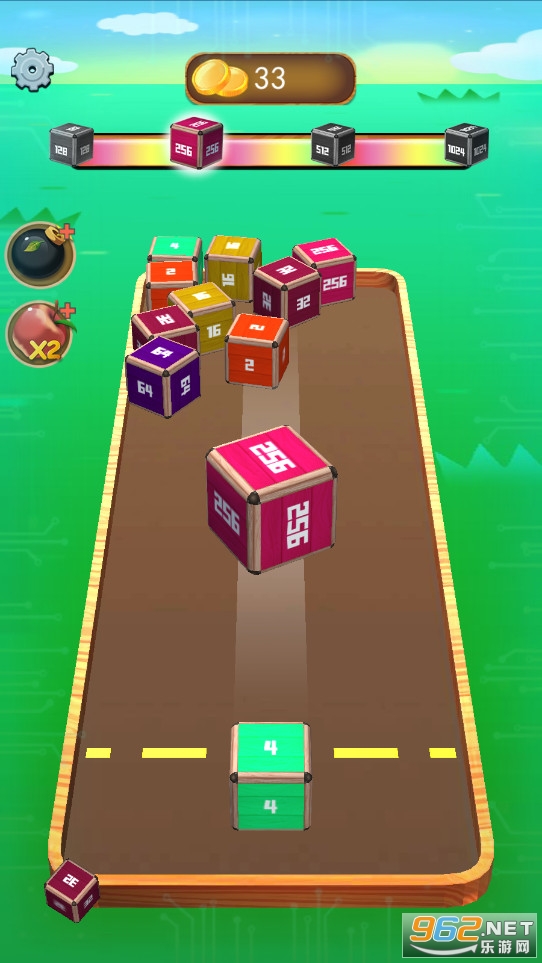《合并立方体游戏》是一款画面清新的类似2048的数字合并益智手游,游戏中玩家可以发射带有数字的方块去进行合并,相同的数字可以合并来获得更大的数字,不断的发射合并,得到256、1024、2048等大数字,合并的越多得分越高,注意选择合适的地方去发射方块,如果方块超过下面的临界线挑战结束。