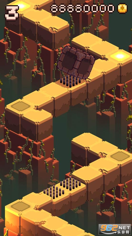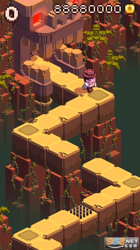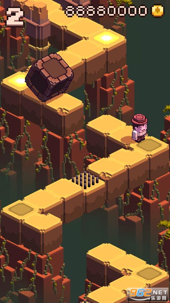 《悬崖逃亡 Cliff Hopper》是一款有趣的3D敏捷跑酷类游戏。游戏采用的是像素风格的画面设计,而且玩家的视角也不再是紧跟在主角身后,而是以一个上帝的视角控制我们的主角。游戏开始之后,这个可怜的小家伙会从一个洞穴中跑出来,而紧跟在身后的并不是什么巨大的怪物,而是一块巨石,它会一直跟在主角的身后,不过摆在主角前面的路只有一条,玩家要做的就是控制主角不停的往前奔跑,一路上会经历许多的机关与困难!努力克服吧!