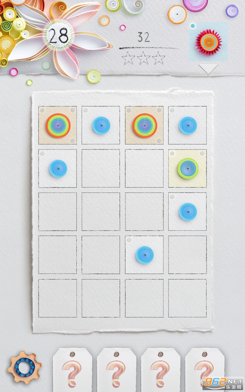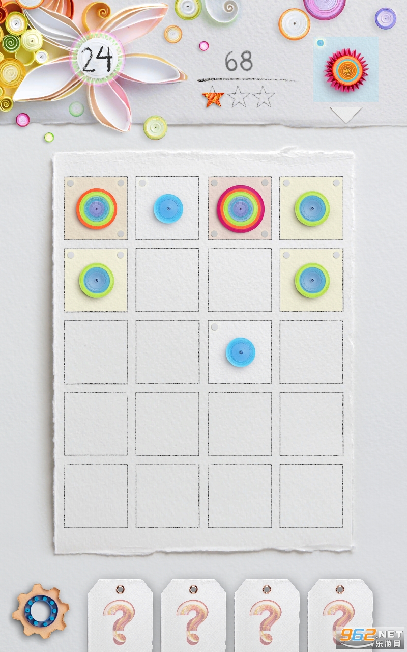 快速思考和轻松滑动即可解决关卡任务:合并两个相同的纸质图块时,将显示下一个价值图块