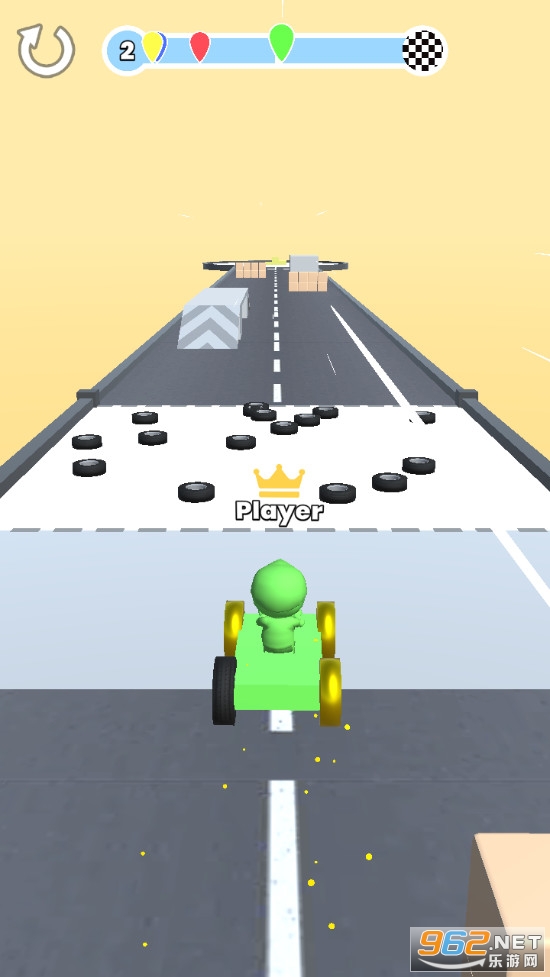 欢迎来的《备胎大作战》,在这里你可以选择自己拾取备胎组装赛车,也可以通过撞击别人夺得别人手上的备胎。