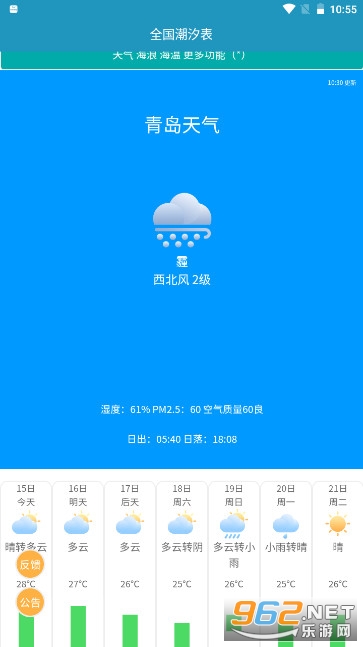 《全国潮汐表app》是一款潮汐时间预测软件,软件让你告别传统的计算方式,直接通过平台就可以查询出全国各地各大城市的海边的潮汐时间,浴场温度,空气质量等等,操作超级方便,需要的朋友就下载吧!