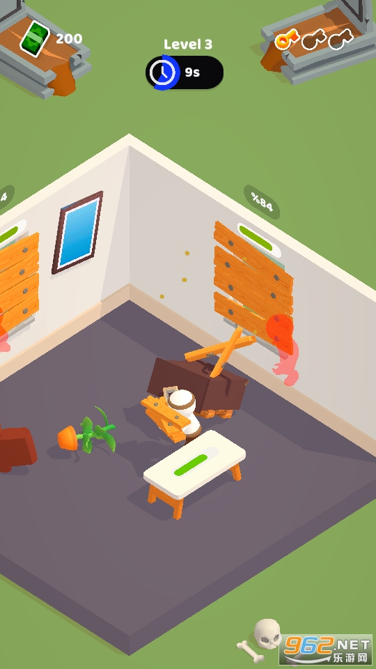 只需要不停的收集木块封好窗户就可以了,不要让坏蛋进来,比较考验玩家的反应能力,坚持一定的时间就能够获得胜利,快来下载挑战吧!