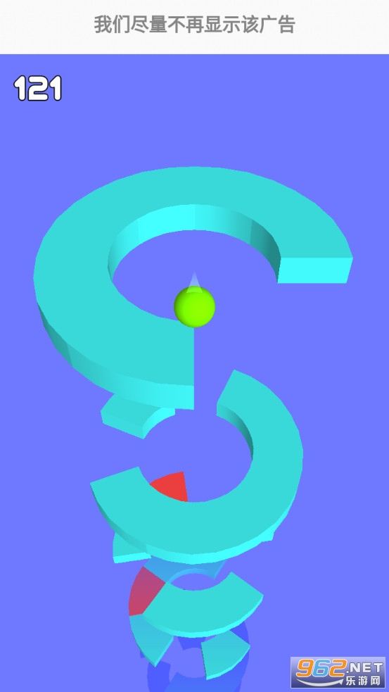 敏捷下落游戏,玩家不能控制小球,只能控制柱体旋转,让小球不断的下落,避开红色的区域,如果撞击到红色平台挑战结束,喜欢的朋友可以下载试试。