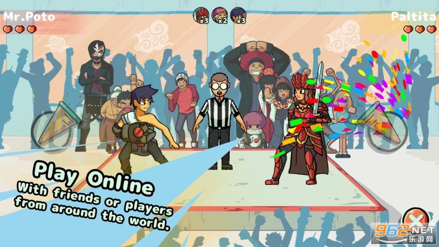 《猜拳皇》是一款卡通画风的拳击格斗游戏,横版街机风拳击格斗,里面有许多我们熟悉的卡通角色,挑选角色随时都可以开启擂台拳击格斗,在擂台上灵活操作,展现自己的身手,凭借着自己娴熟的操作技巧轻松击败对手,善于去使用那些连招动作,可以很轻松的打败你的对手。