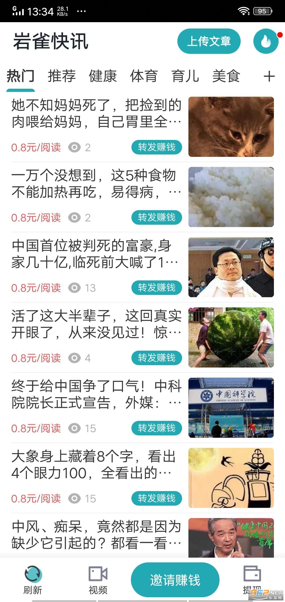 2、软件上每天更新大量优质新闻,同时支持个人上传,转发至,好友点击就挣钱;