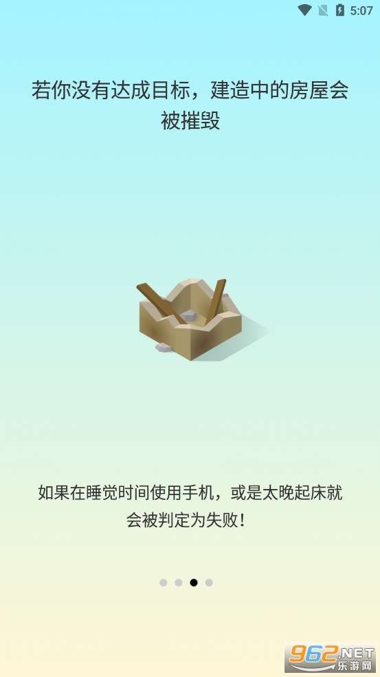 若你在设定的睡觉期间使用手机,你正在建造的房屋将会倒塌。