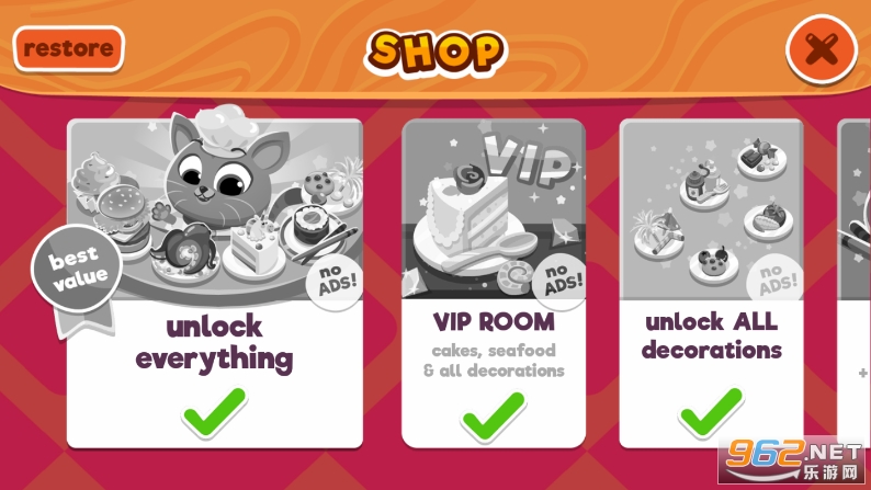您负责管理 Bubbu 的猫餐厅,烹饪全球流行的菜肴并扩展您的动物餐厅业务&127881;。接受订单,尽快把所有的菜做完,享受用甜或咸的配菜来装饰它们,然后将准备好的食物&127835;和饮料&129483;提供给顾客以换取金钱。在玩这些可爱的烹饪游戏的同时,您将能够升级&9195;,自定义和装饰&127888; Bubbu 餐厅。所以卷起你的袖子,把它打造成城里最好的猫餐厅!
