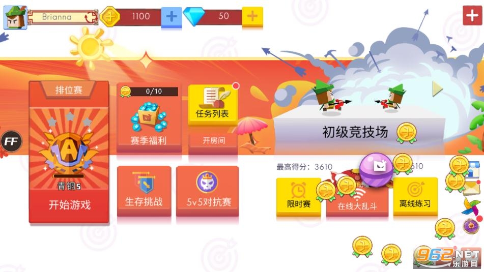 1、玩家们将能自由选择自己的武器和技能,弓箭手大作战下载后在大型随机生成的游戏场景内展开激烈的厮杀。