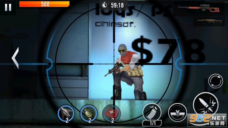 《刺客狙击任务》(Assassin Sniper Mission)是一款画面精致的射击闯关手游,游戏中有着众多的武器装备,玩家可以解锁各种枪械去战斗,有着闯关模式和PVP模式两种玩法可以体验,玩家需要灵活的调整准星去击杀全部的敌人,注意走位,利用墙体等来保护自己。