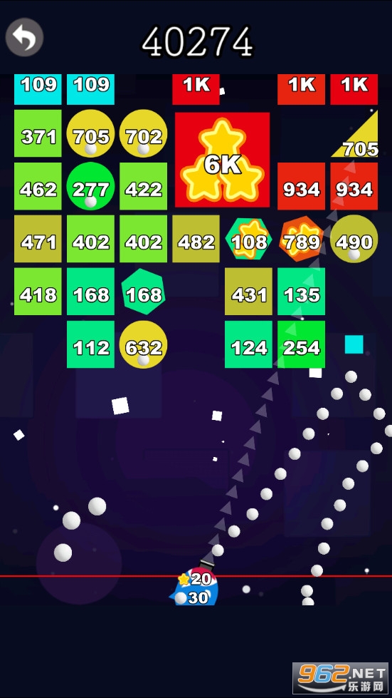 《不停歇的球游戏》是一款画面简约的打砖块的休闲竞技手游,游戏中玩家需要敏捷的发射小球去击碎下落的方块,每个方块都有着数字,数字越大就越难击碎,玩家需要调整小球发射的方向,让小球不断的反弹去撞击装快,击碎的越多得分越高,注意如果方块触底挑战就结束了。