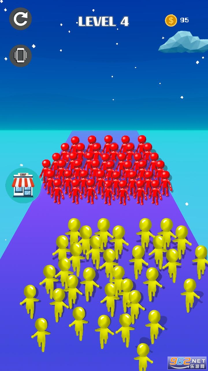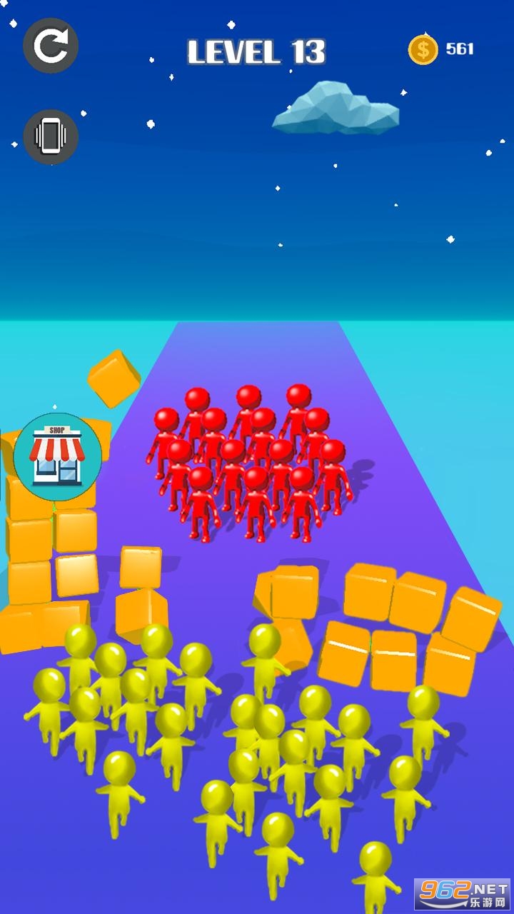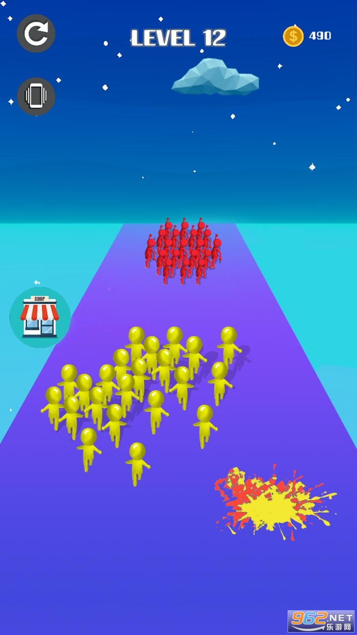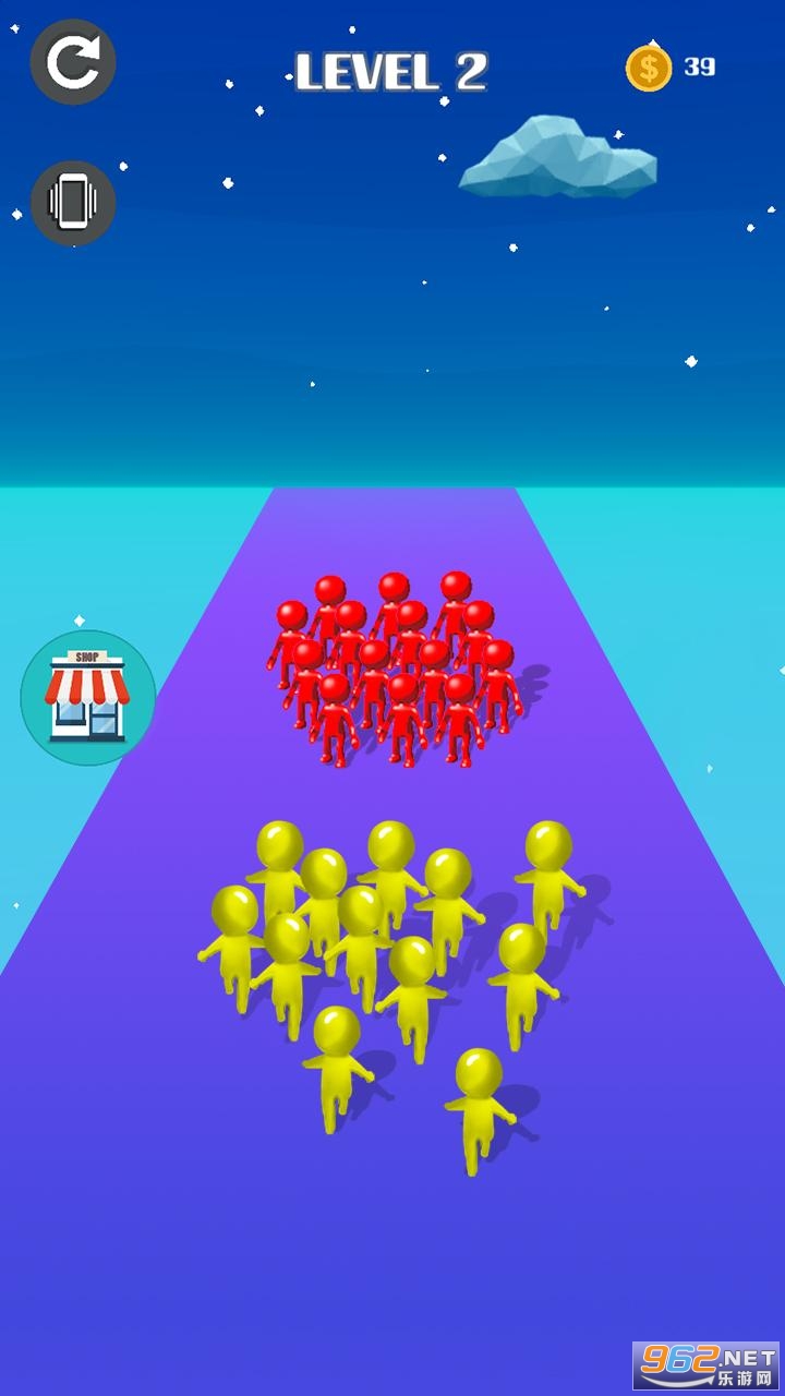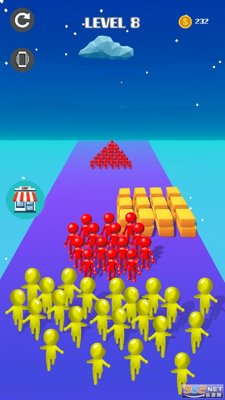 游戏的玩法比较简单,控制橡皮人向前奔跑,并通过一些倍数增加的区域去增加队伍的人数,控制带来的蓝色橡皮人前行,击败红色橡皮人,冲向终点,喜欢的朋友可以下载试试。