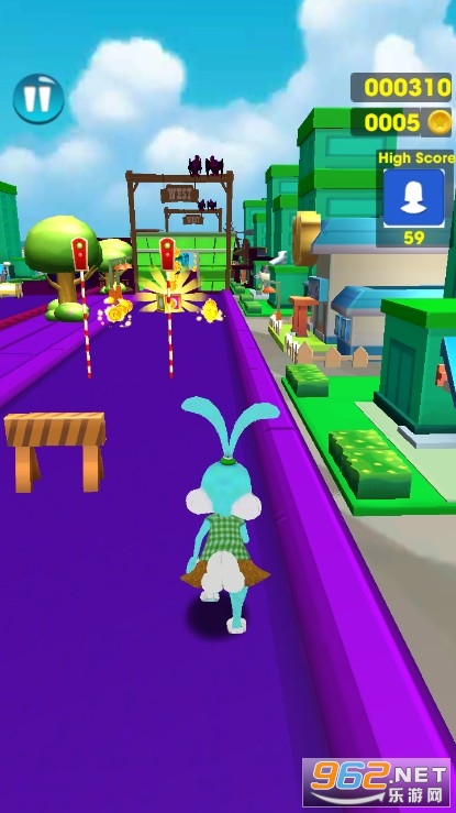《兔子快跑3D》是一款非常欢快的兔子冒险跑酷游戏,不错的敏捷类闯关游戏,单手就能控制我们的兔子去闯关冒险,让可爱小兔子在面对这些陷阱障碍物时做出各种动作,跑、跳、翻滚、爬绳。千万不要撞上障碍物,更不要被行驶过来的火车撞到。
