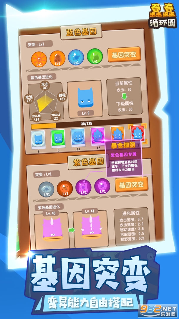 蠢蠢循环圈是一款可以挂机的塔防游戏,在守卫家园的同时,可以来一场吞噬进化大作战,从获得更多的塔防收益,多种生物的特殊能力搭配,组合策略,塔防能力对吞噬大作战的影响加成,一切都是相辅相成。