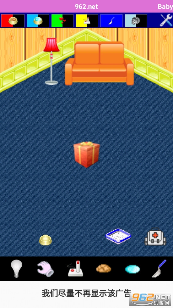 点击右上角的“工具”图标,可以给你的虚拟宠物起个名字,或者换个地板、墙壁。