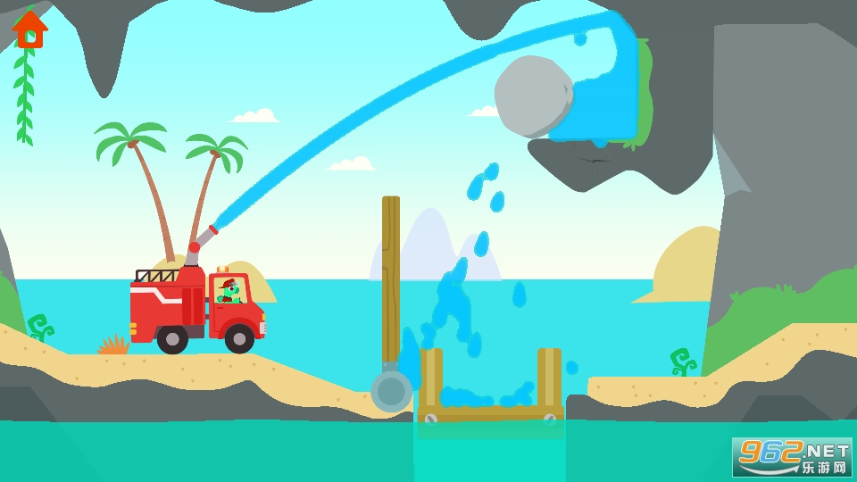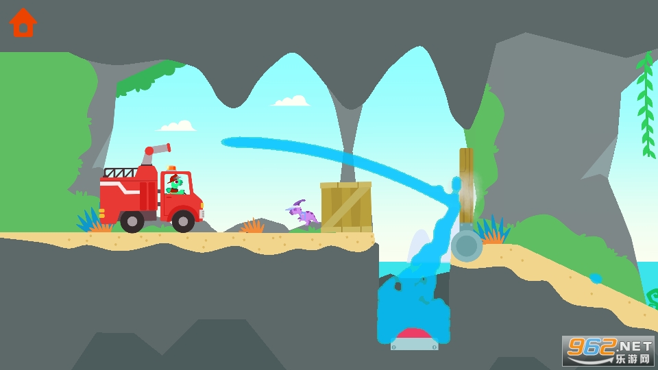 消防车的水不仅仅可以灭火。例如,通过控制消防车的龙头,喷水推动木箱,移除沿路的障碍物!可以利用水改变机关重力的方向,破解机关;甚至可以用水来引爆化学物,破坏即将坍塌的木板,救出恐龙!另外,灭火的角度也十分重要。当一些火源隐藏缝隙中,也可以通过流动下落的水来逐渐扑灭火苗;有时,也可以利用水跟墙壁或障碍物的碰撞,改变水方向,同样能灭火。