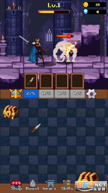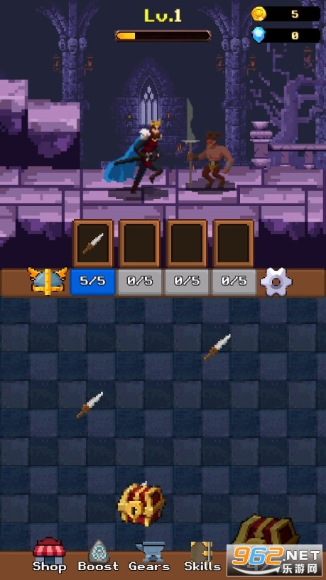 3、以经典的战士形象亚瑟王为主角进行闯关挑战。