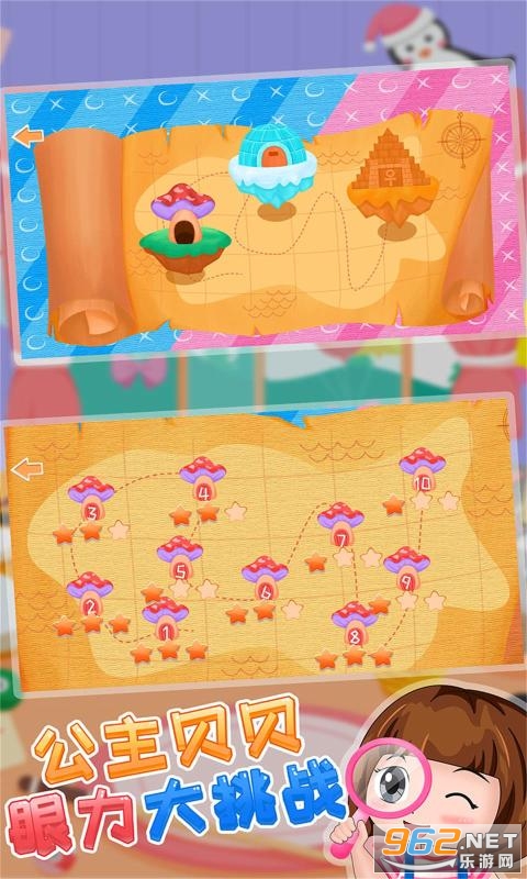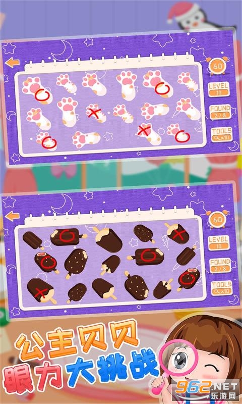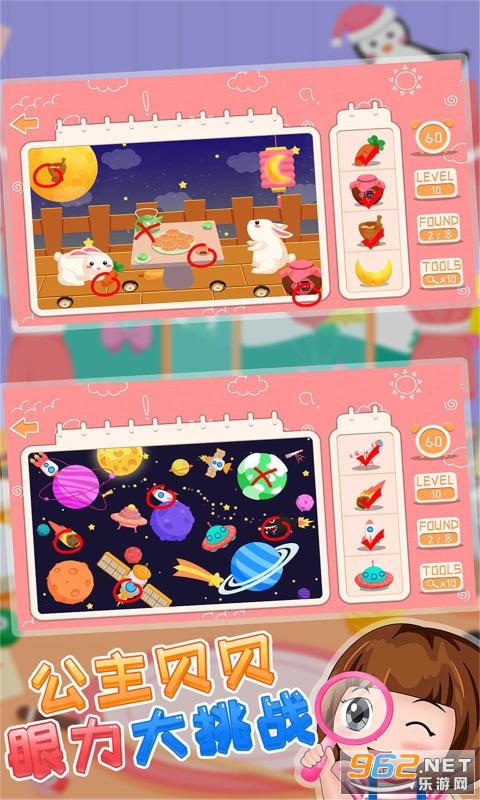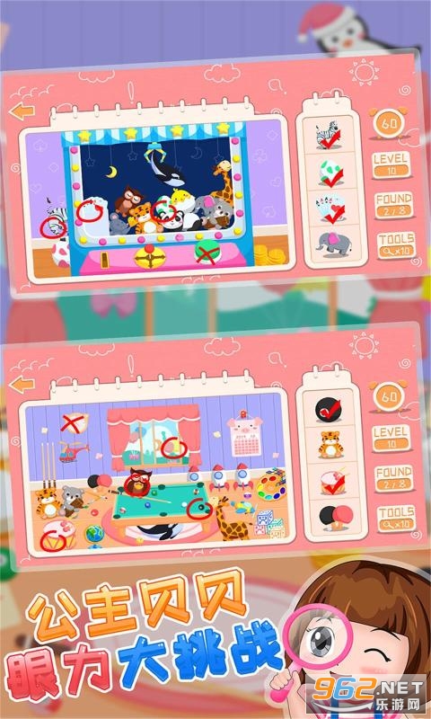 《公主贝贝眼力大挑战》是一款画风治愈可爱的找茬休闲游戏,儿童趣味找不同,有超多有趣的图片等你来解谜寻找不同,在规定的时间内圈出所有的不同之处,游戏对玩家们的眼力和耐力有极大的考验,只要你很好的具备这两点就能轻松完成所有关卡的挑战。