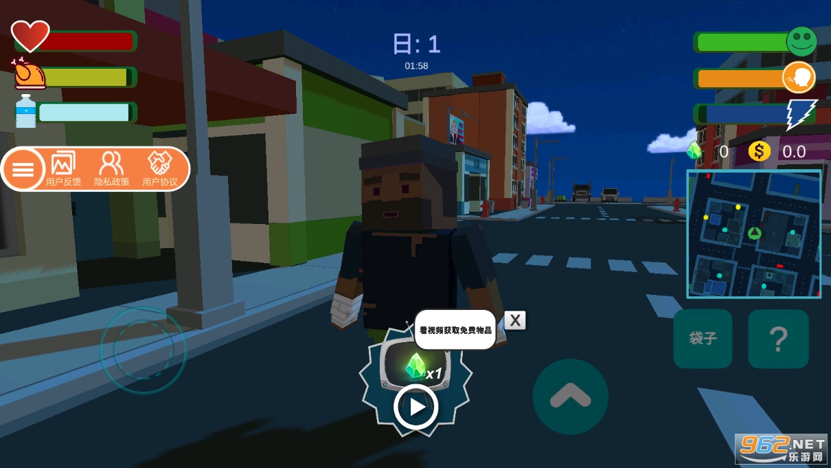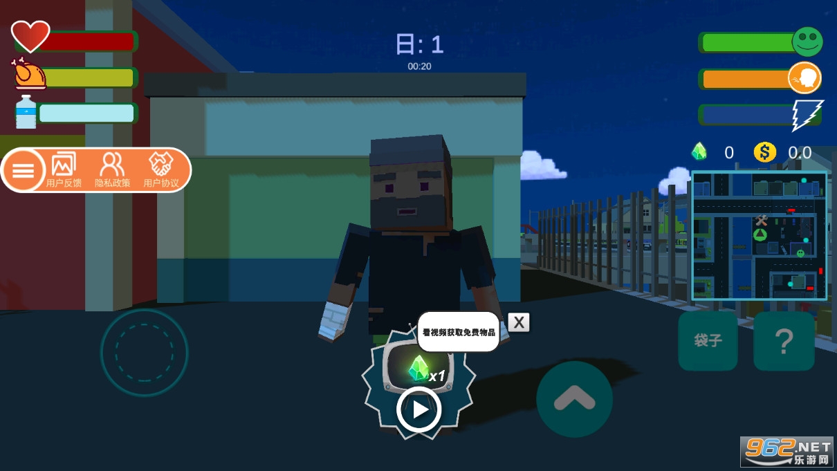 《模拟人生自由行动》是一款复古像素风格生存模拟游戏,夜幕降临你将开启你为期24小时的生存之旅,在城市之中首先寻找到合适的避难所位置、能够保证你的身体健康状况维持的食物、饮用水。每当白天太阳升起的时分,你需要暂时回到避难所中进行调整,否则会影响你的存活时间缩短!
