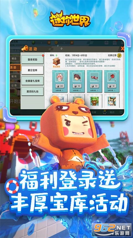 登录领限定定制装扮!还有玩法派对!闯关,联机,狂欢夏日,领多重专属福利!一起参与暑期派对吧!
