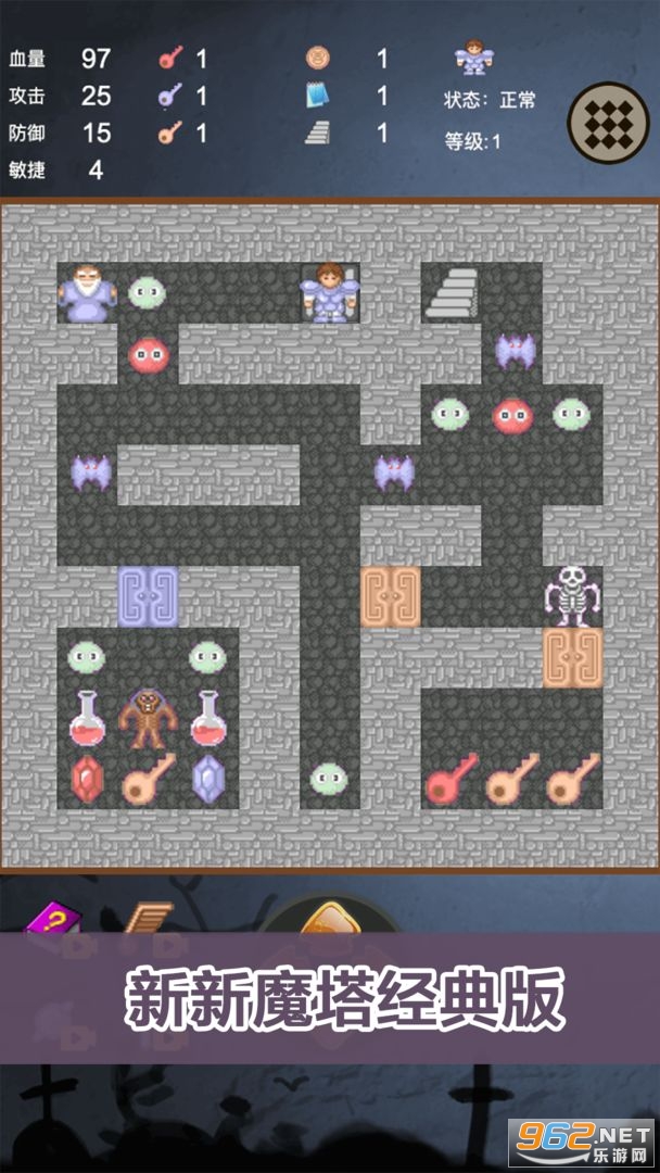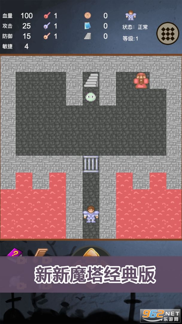 新新魔塔经典版是一款RPG探索冒险游戏,显示20层,实际层数大于24层,你要击杀各层的小怪及boss,增强角色的属性、收集钥匙以及各类神秘的道具,不断让自己变强,成为拥有神之血裔的勇士!游戏中杀敌策略需要先思后行,方能顺利通关。希望能勾起你小时候玩这个游戏的美好回忆!