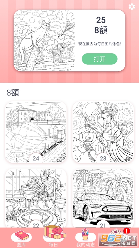游戏中每张皆拥有不同的填色页你能自由的进行挑选,为自己喜欢的图画填色改色。