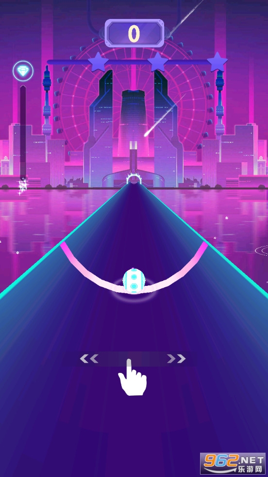 《球球滚动节奏》是一款全新的音乐节奏类游戏。拖动屏幕上的球滚动穿过标志,非常有想法的将音乐节奏与跑酷玩法结合在一起,你既能感受到跑酷的刺激,也能享受音乐的魅力。略带科幻的风格设计,搭配上极具动感的音乐,简直就是炫酷至极,玩家会不由自主的跟着音乐节奏舞动身子。赛道上出现的钻石有很大的用处,解锁新关卡或者更换小球皮肤都能用到,所以尽量多多收集吧!精美又不失简约的游戏画面,轻快舒适的音乐节奏,令人爱不释手!