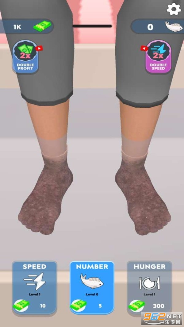 3、放更多的小鱼,提高其速度与饥饿感,让你的双脚更干净闪亮。
